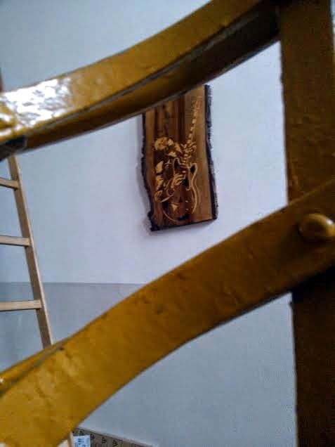 INTARSIO A LAMELLE.amaranto,legno serpente,noce,acero,palissandro. JIM MORRISON-intarsio a lamelle su asse di pino BENIT...